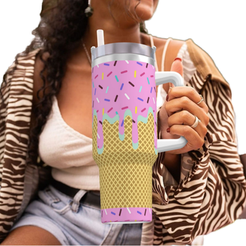 1pcs Personalized Custom 40oz Stainless Steel Tumbler Ice Cream Cone Printed Car Travel Tumbler with Lid Straw