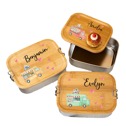 Fiambrera Bento personalizada de acero inoxidable, respetuosa con el medio ambiente, Linda Escuela, niños, tapa de bambú, grado alimenticio, gran capacidad, Simple